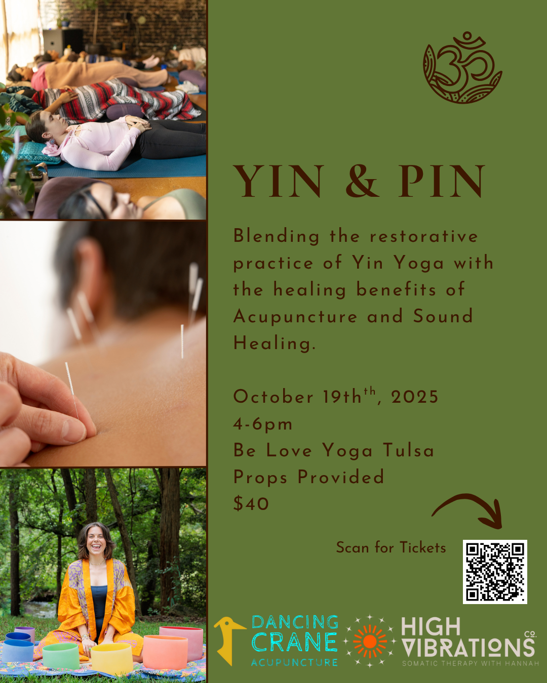 We’ll start with Yin yoga guided by to help soften the body, quiet the mind, and prepare the system for deeper healing. Then we’ll move into a community acupuncture session I’ll guide to support energetic flow, balance, and stillness.